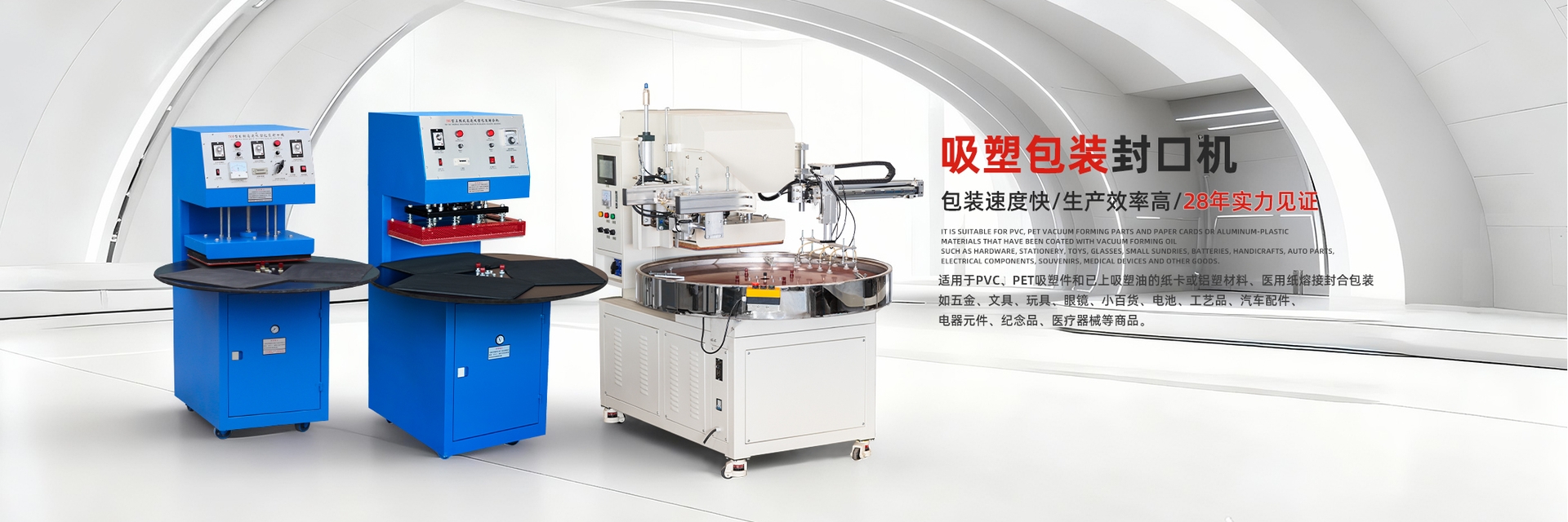 吸塑包裝機應用行業廣:塑料包裝行業(吸塑包裝、塑膠、電池、玩具、禮品、五金、家電、電子、文具、裝飾); 食品包裝行業(快餐···